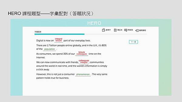 有鑑於此,Voicetube HERO 有個很貼心的設計,那就是練習題要全部答對才能進入下一課。