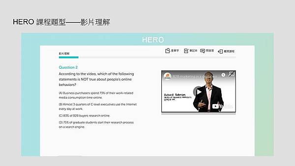 體驗結果是─我對這VoiceTube HERO的高級課程非常滿意,讓高階英語學習者中終於有了適合的教材,其他級別的課程雖然沒有體驗到,但我相信相同的練習題型及學習方式一定也能讓各種程度的學習者提升英語能力。